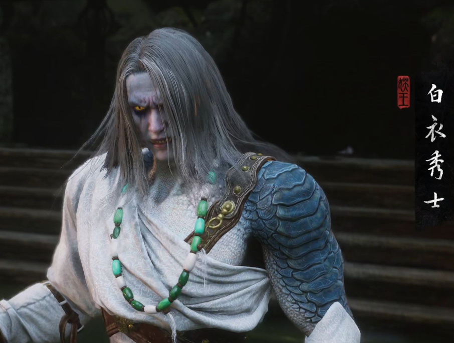6. 白衣秀士:在水塘中静静等待着玩家的“白衣秀士”,其战斗分为两个阶段。在第一阶段,玩家需注意躲避其突刺攻击;而进入第二阶段后,白衣秀士会变为人首蛇身的形态,攻击模式也随之发生变化。尽管如此,玩家仍可遵循躲避后输出的策略来应对。
