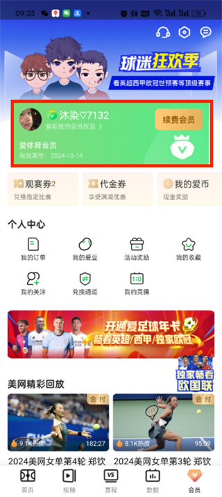 2. 接着,在会员页面中,您可以看到许多相关信息。请点击【爱体育会员】选项。