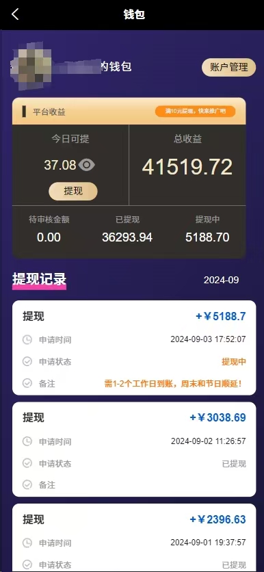 以单个账号日收益10元计算,如果你能够管理10个账号,那么每日的收益将达到100元,多号多撸,上不封顶。覆盖抖音、快手及视频号。无论是个人还是团队,都能在这个平台上找到适合自己的推广方式,开启一段收益丰厚的推广之旅。