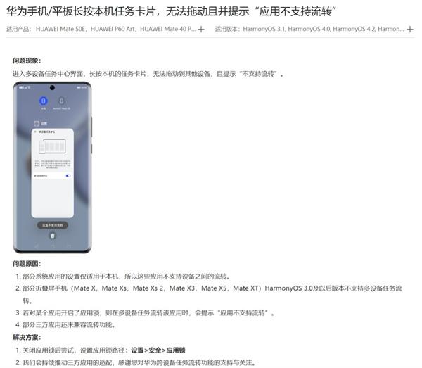 华为官方已明确表示,部分折叠屏手机在升级至HarmonyOS 3.0或更高版本后,将不再支持多设备任务流转功能。受影响的机型包括: