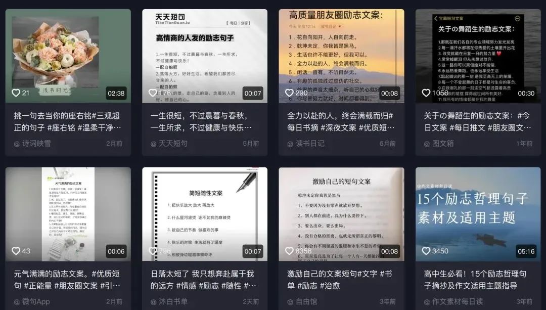 是的,就是这种文案号,用一句话打通人与人之间的情感共鸣。什么是文案号,就是把文案做成视频。