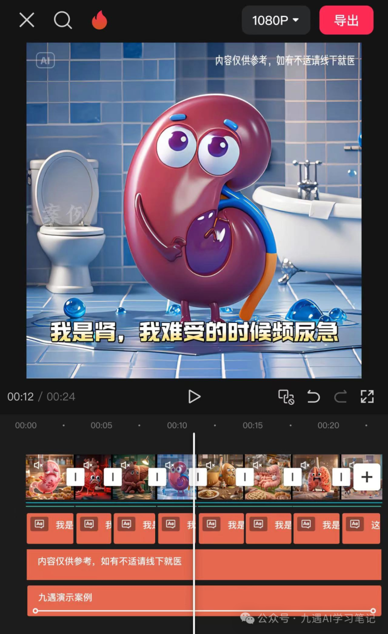 用Deepseek改写爆款文案 2. 用即梦生成卡通器官图 3. 用即梦图生视频4. 使用剪映后期剪辑