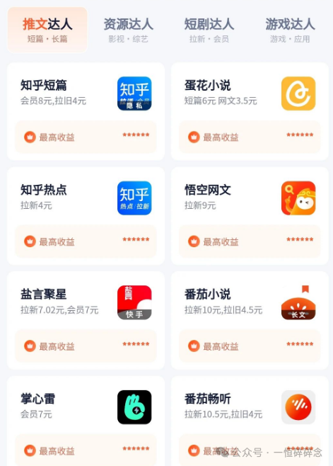 在右豹平台,能推广的可不只有各大小说平台的 APP。像短剧 APP、资源 APP,还有游戏 APP 的推广业务,这儿都有。