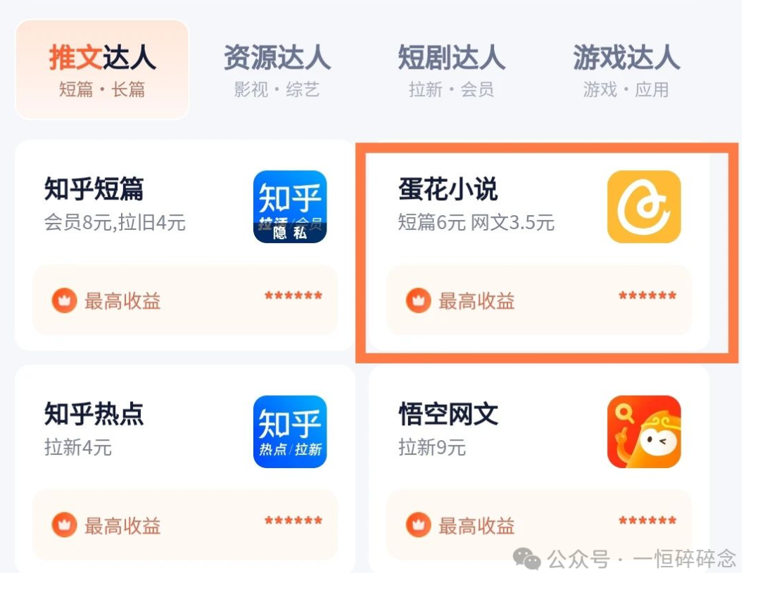 只要有人刷到你的视频,觉得有意思,跑去下载专门看小说的 APP,把整部小说免费看完,那咱们就能从 APP 那儿拿到推广新人的钱,相当于赚一笔外快。