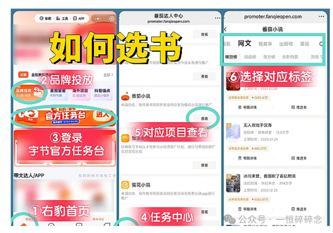 不管咱用啥样的视频形式搞小说推文,最终的目的就一个,想法子把看视频的人吸引到咱们要推广的小说平台上,让他们去看小说。