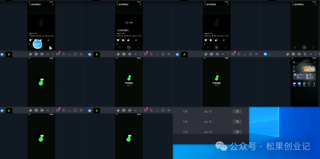 在每个模拟器窗口中,选择播放自己上传的那首歌曲,设置成循环播放。