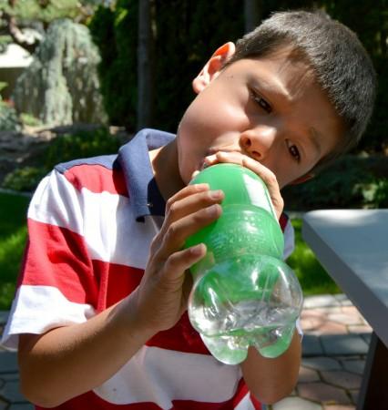 - 玩法升级:现在,握住瓶子,从底部向下拉动气球嘴,你会发现什么有趣的事情发生了!
