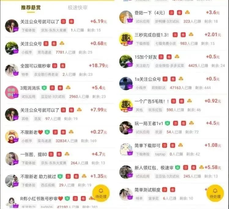 每个任务单价从几毛钱到几十块不等,普通任务12块,稍微复杂一点的拉新推广任务能给530元一单!