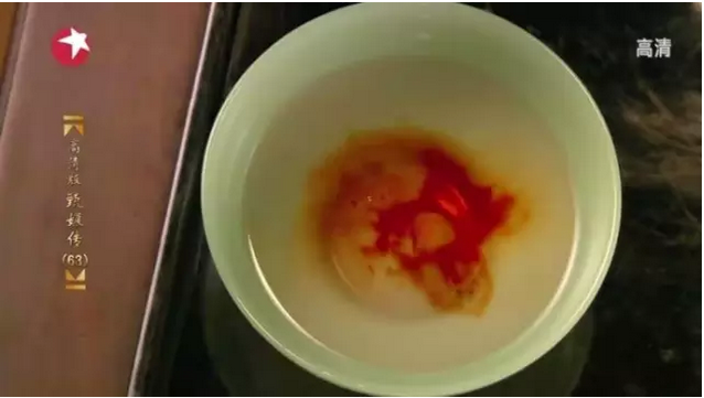 古装剧中常见的情节是这样的:一碗清水,两滴血,一同滴入水中,如果血液能够互相融合在一起,就表示父母亲生;反之则”不合”。