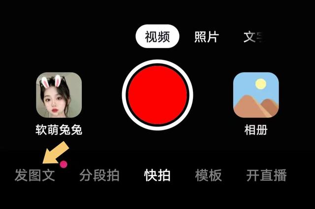 点击“➕ ”,您将进入视频发布界面,并在底部找到”发图文”选项,如下图所示: