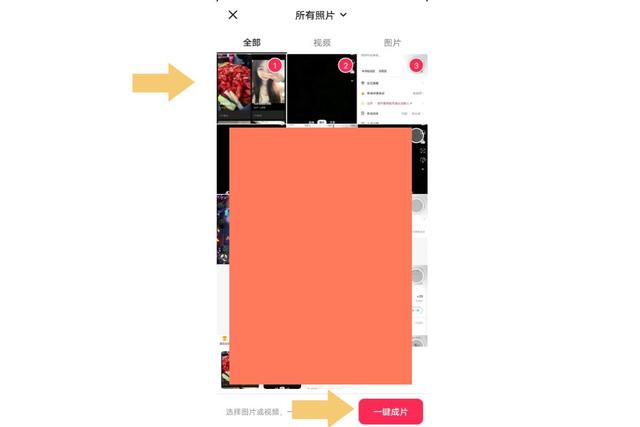 点一下“一键成片”就搞定!选中你想要制作视频的照片,就像这样:看下面的图示: