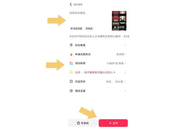 点击”下一步”后,您将进入发布作品的最终界面,在这里您可以设置标题和封面,然后点击”发布”按钮即可完成图片发布,如下图所示: