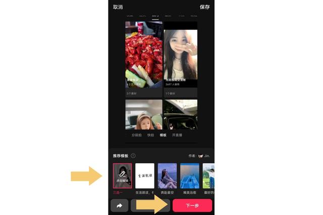 除了第一种方法,您还可以使用一键成片功能来制作视频。在视频发布界面中,您可以找到”模板”选项,如下图所示: