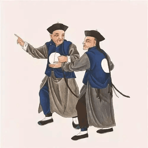 俩差役看到老张出来,立刻上前迎接,三人按原路返回。老张回头一看,噢天啊!知县大人居然脖子上套着铁链,踉踉跄跄地跟在后面!老张吓得双手捂住脸,口中喃喃自语:“你没看见我,我不认识你。不关我的事,不关我的事…”