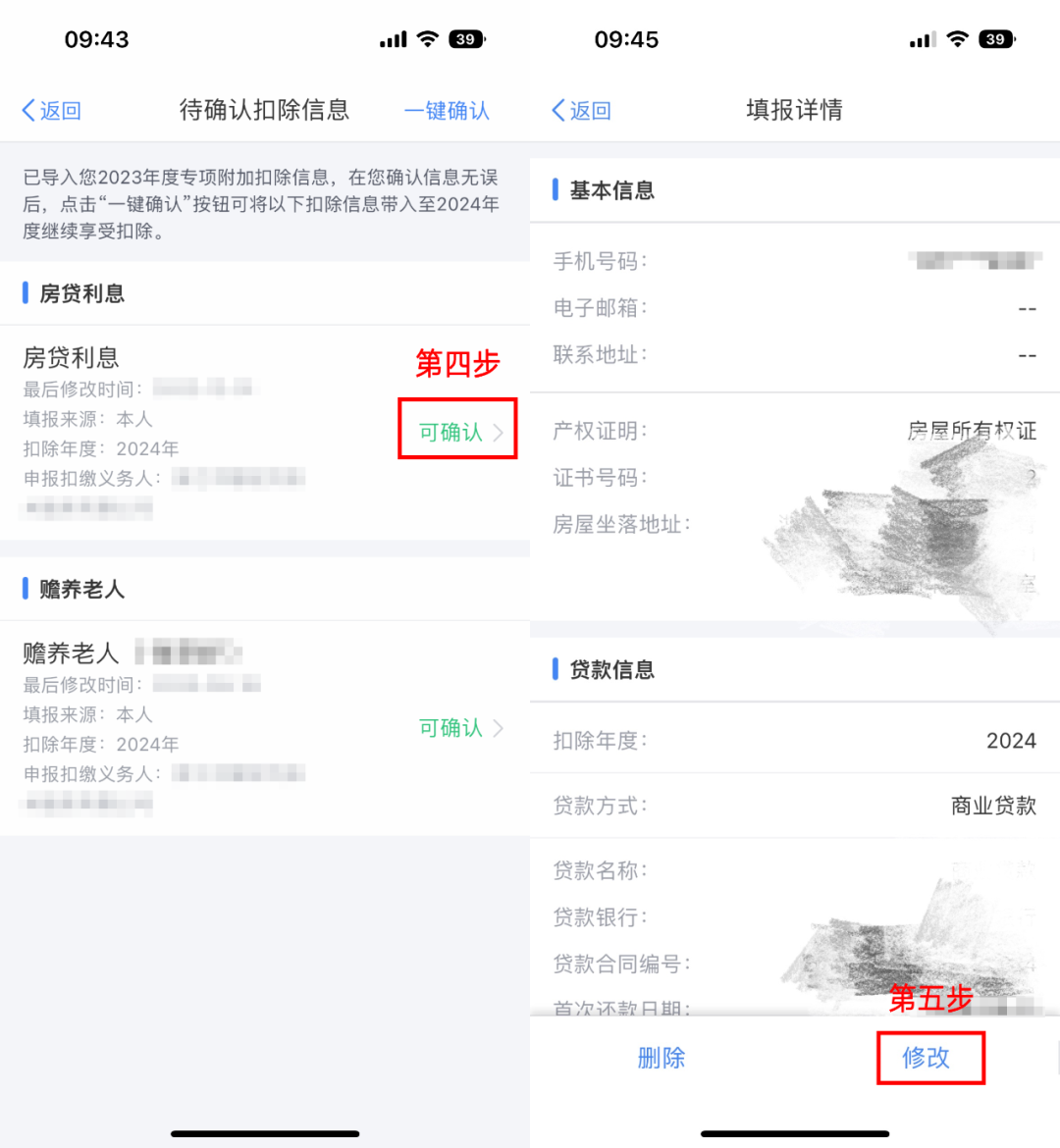 (3) 打开处于“可确认”状态的专项附加扣除,核对信息;如果需要修改,可以点击“修改”,确认信息后点击“一键确认”。如下图所示: