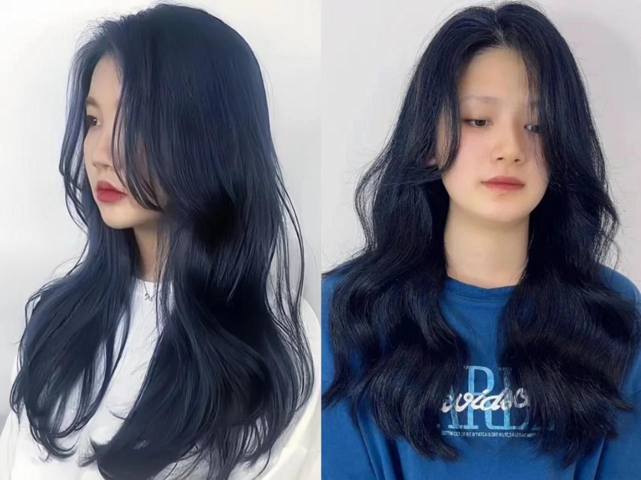 蓝黑色:蓝黑色这种发色非常时尚且备受欢迎,给人一种稳重而内敛的印象。它不仅能够突显时尚感,还让头发看起来更加光泽动人。