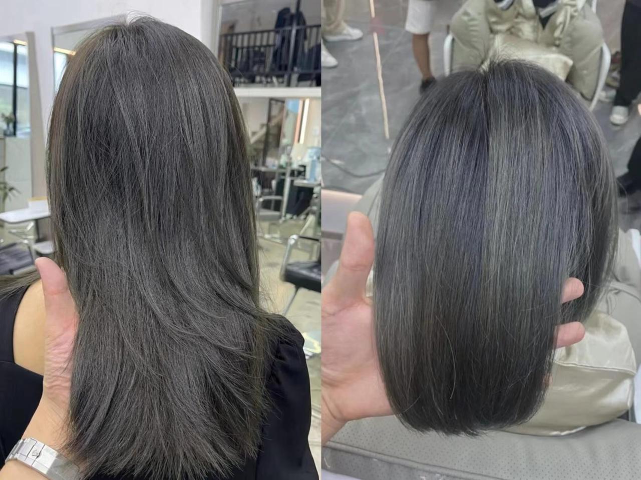 茶青灰:茶青灰这是一种高端的发色,结合了茶绿色和灰色,展现出一种青色的效果。这种发色不仅非常独特,还能展示出独特的品味。