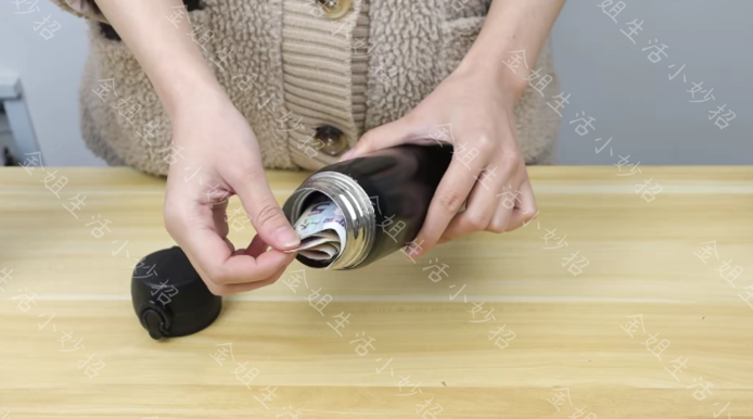 将零钱、硬币统统放入保温杯中,它就变身为您的专属储蓄罐。由于保温杯具有良好的密封性,可以防止零钱的散落或丢失。