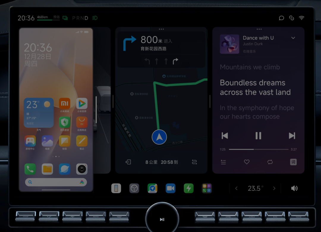 许多国内汽车制造商目前选择搭载高通车载芯片和基于Android的车载系统,然而,他们却未开放生态系统,导致车载芯片的强大性能无法得到充分利用。相比之下,小米SU7将逐步整合小米平板上的超过5000款应用程序,并支持手机应用在车载系统间的流畅切换。凭借庞大的平板和手机生态系统支持,小米SU7的车载系统将为用户提供更多丰富的娱乐、学习和办公功能。