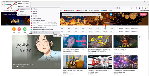 4、随后,我们可以在界面顶部看到我们收藏的网页。另外,也可以点击上方菜单栏中的【书签工具】,然后在子选项中找到我们收藏的网页。