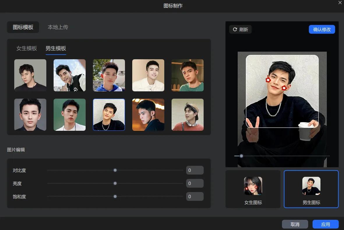 第四步:完成制作后,你可以点击像塑软件右上角的手机预览按钮,在手机上使用特效君软件扫描二维码以查看效果。确认一切正常后,再次点击右上角的制作图标。在弹出的选项中,选择你喜欢的人物,确认修改后应用即可。