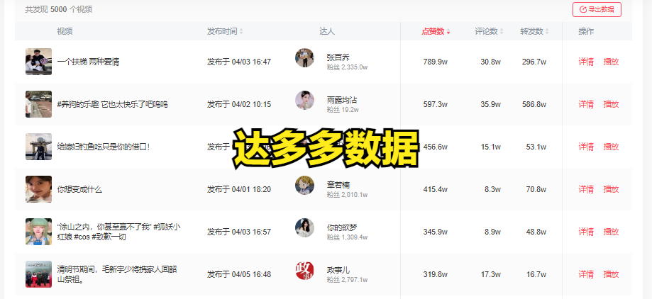 例如:我们发现一个视频,虽然曝光量很高,但播放量却很低。这时我们可以考虑是否是因为视频封面设计不够吸引人,或者标题内容缺乏吸引力。通过查看当天视频的记录,我们很快就能找到原因。此外,在统计这些数据后,我们还可以将其与同行进行对比分析。