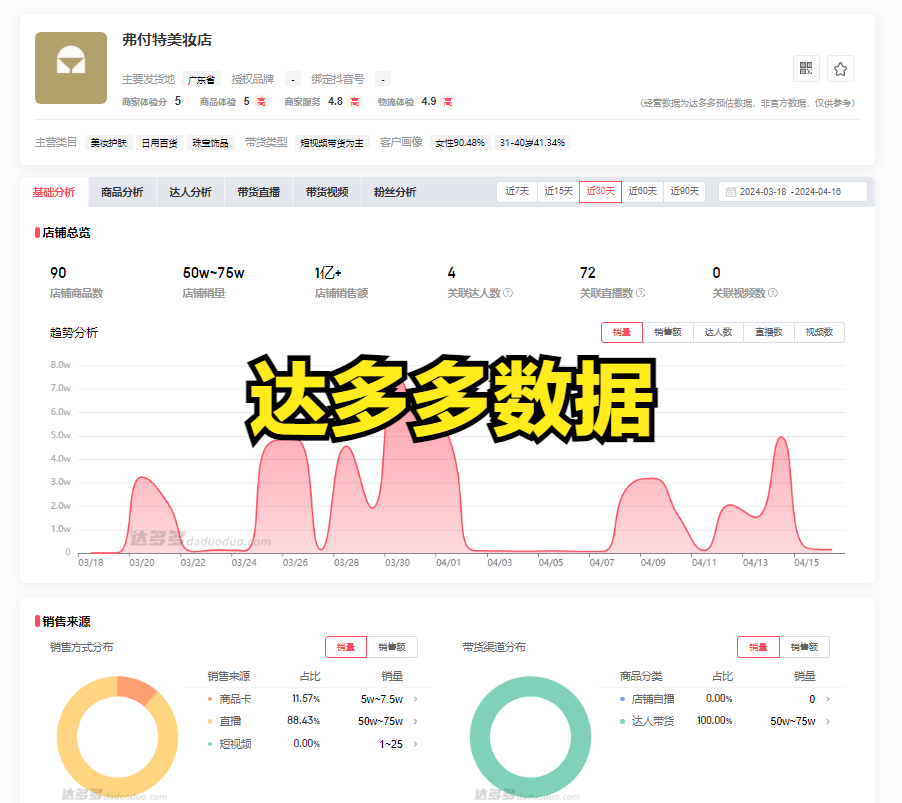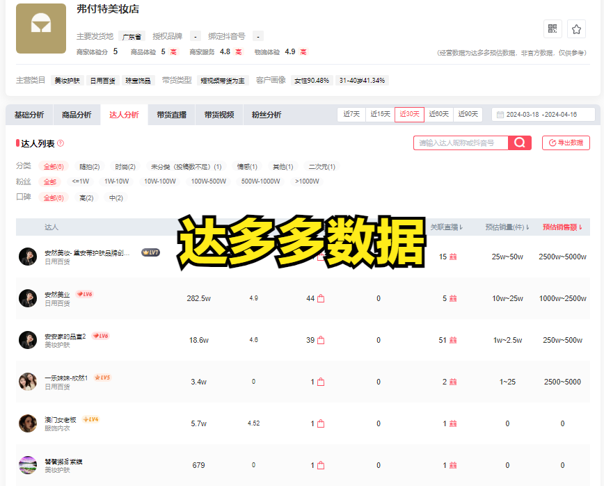 当然,这些数据只能提供一个粗略的估计,数据本身也具有一定的模糊性。如果您想准确了解某位达人的销售情况,可以借助专业的数据分析工具,比如下面这个: