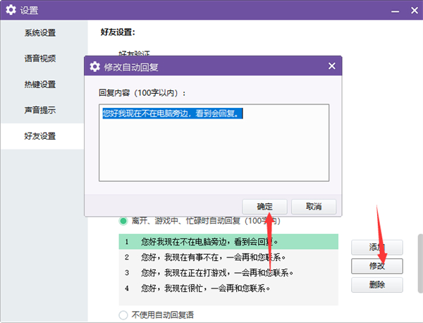 6、也可以点击【修改】,直接修改现成的自动回复内容即可。