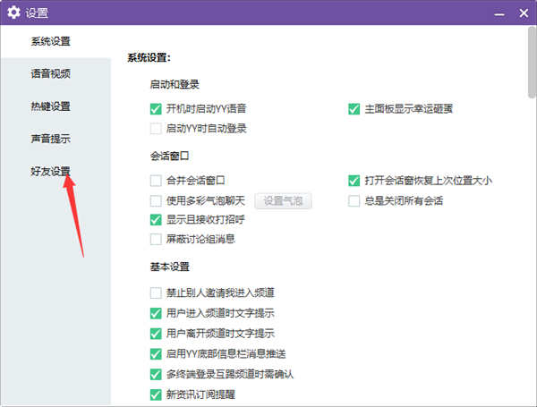 3、进入设置界面后,找到左侧选项栏里的【好友设置】。