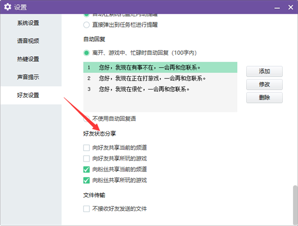 4、往下拉到最下面,找到【好友状态分享】,可以根据自己的实际情况来勾选好友状态了。