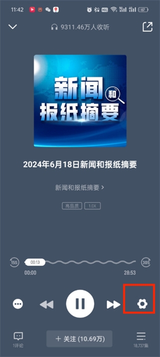 2. 进入播放页面后,您会看到多个功能选项。请点击页面右侧下方的“设置图标”,以访问播放设置。