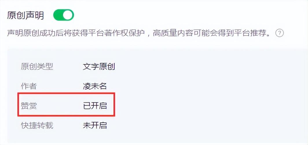 开通条件很简单:只要开通了文章的【原创】功能,并在发布文章时选择【原创】,就有机会获得读者的打赏。