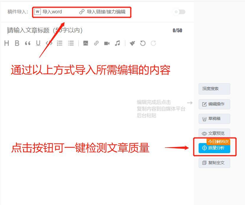易撰是一款多功能的自媒体创作和运营工具,我们可以合理利用它网站上的一些功能提高我们的写作力,包括自媒体库、AI创作、文章质量检测等等,自媒体库涵盖了全网各大主流平台的自媒体资源可以供我们学习参考;AI创作只需要我们在对话框输入相应的需求就能在段时间内获得一段符合要求的高质量文本,大大提高了我们的写作力和创效率。