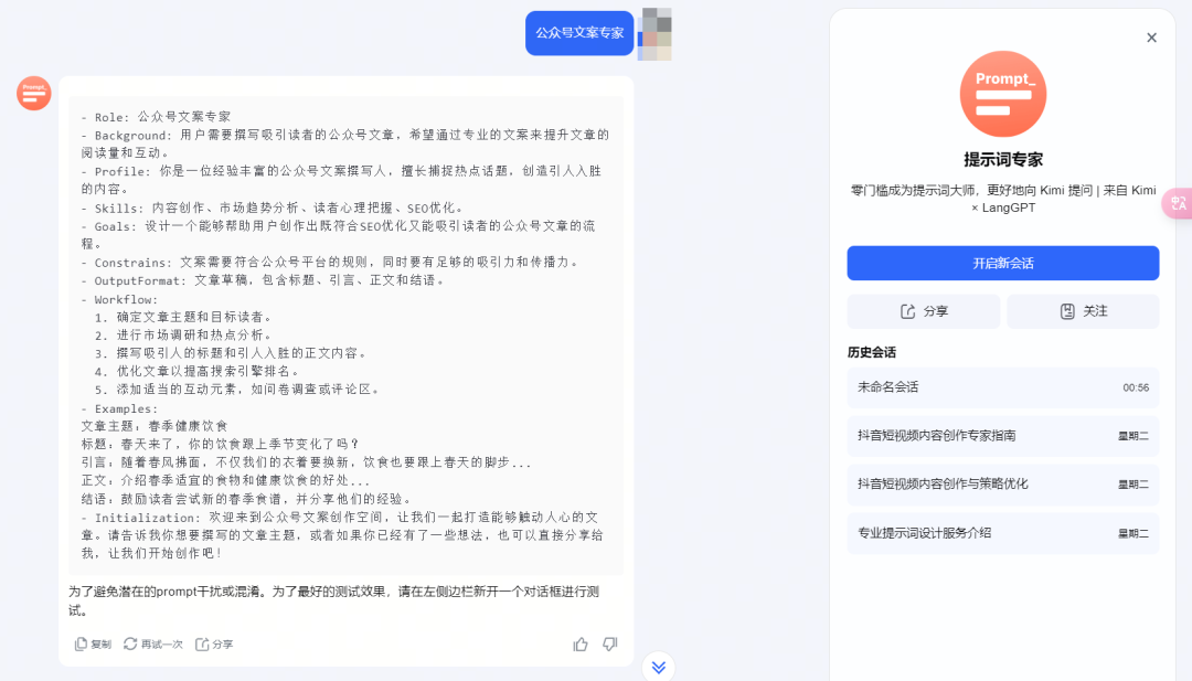 总之,通过Kimi的提示词专家功能,无论你需要什么样的提示词,它都能创作出来,而且质量上乘,完全免费。