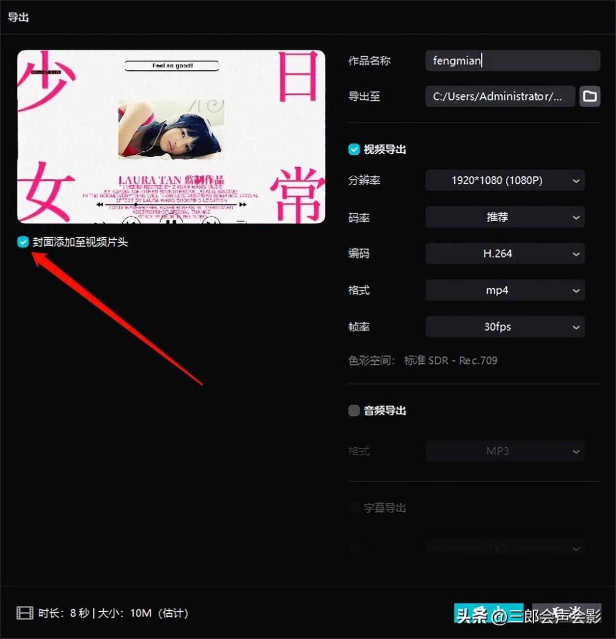 但是在极少数情况下,我们设置的封面并导出后,视频的封面并不是我们设置的封面,这个是软件的bug,暂时无解!