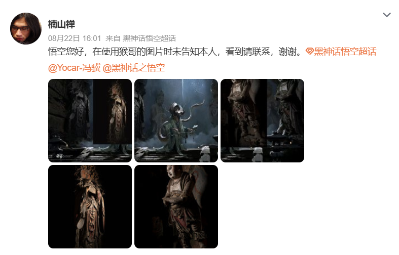 根据新闻账号的报道,8月22日下午,一位名为“楠山禅”的博主在体验《黑神话:悟空》时,发现游戏中的某些图片与他的作品有相似之处,并对此提出了指控。
